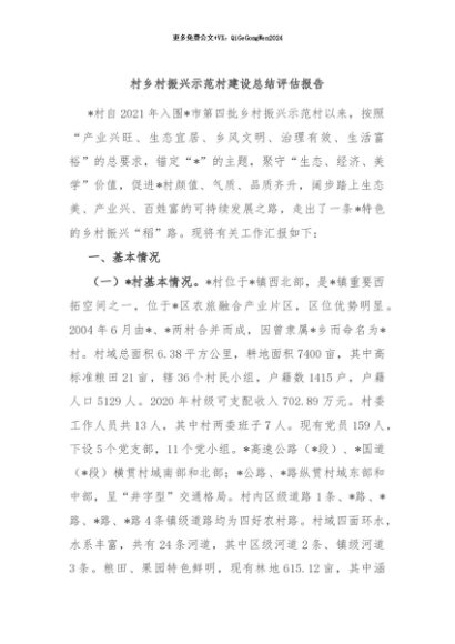 / 【七哥公文】2024年:村乡村振兴示范村建设总结评估报告+更多免费公文+VX:QiGeGongWen2024