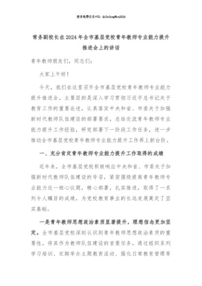【七哥公文】2024年:常务副校长在2024年全市基层党校青年教师专业能力提升推进会上的讲话+更多免费公文+VX:QiGeGongWen2024