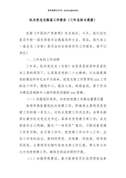 / 【七哥公文】2024年:机关党总支换届工作报告(三年总结与展望)+更多免费公文+VX:QiGeGongWen2024