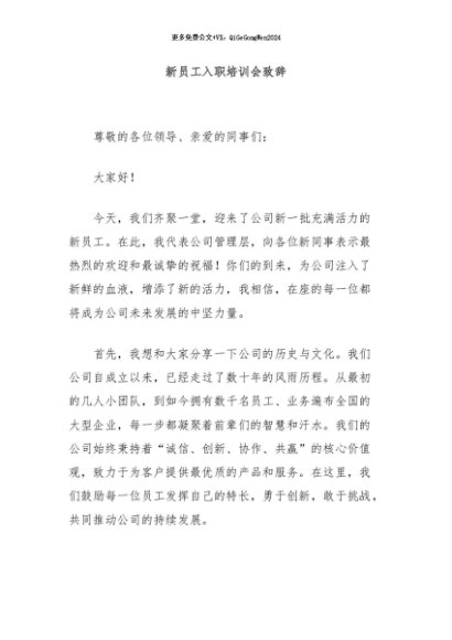 / 【七哥公文】2024年:新员工入职培训会致辞+更多免费公文+VX:QiGeGongWen2024