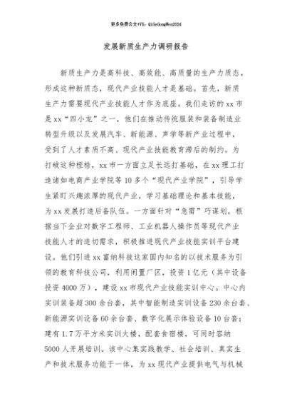 / 【七哥公文】2024年:发展新质生产力调研报告+更多免费公文+VX:QiGeGongWen2024
