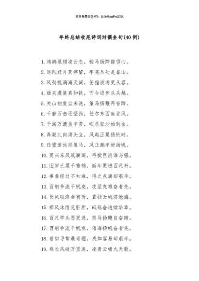 / 【七哥公文】2024年:(40例)年终总结收尾诗词对偶金句+更多免费公文+VX:QiGeGongWen2024