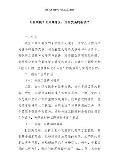 【七哥公文】2024年:国企创新工匠主题乐见:国企发展的新动力+更多免费公文+VX:QiGeGongWen2024