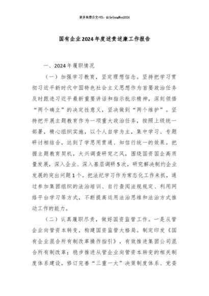 / 【七哥公文】2024年:国有企业2024年度述责述廉工作报告+更多免费公文+VX:QiGeGongWen2024