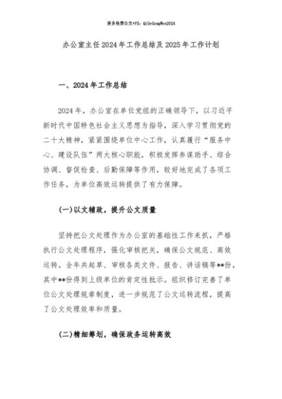 / 【七哥公文】2024年:办公室主任2024年工作总结及2025年工作计划+更多免费公文+VX:QiGeGongWen2024