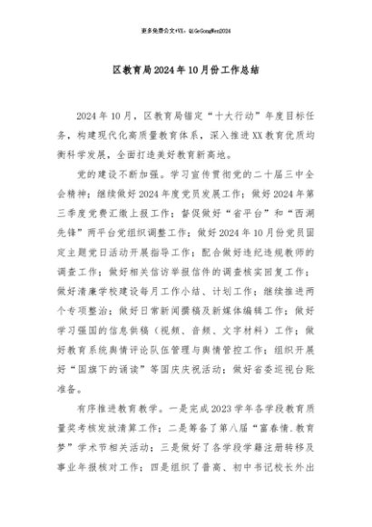 / 【七哥公文】2024年:区教育局2024年10月份工作总结+更多免费公文+VX:QiGeGongWen2024