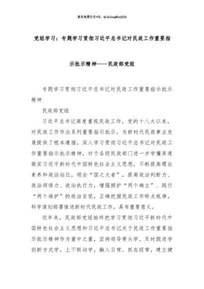 【七哥公文】2024年:党组学习:专题学习贯彻习近平总书记对民政工作重要指示批示精神——民政部党组+更多免费公文+VX:QiGeGongWen2024