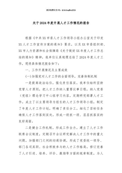 / 【七哥公文】2024年:关于2024年度开展人才工作情况的报告+更多免费公文+VX:QiGeGongWen2024