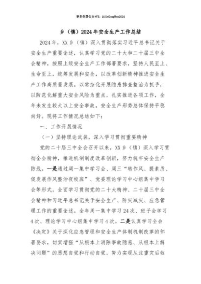 / 【七哥公文】2024年:乡(镇)2024年安全生产工作总结+更多免费公文+VX:QiGeGongWen2024