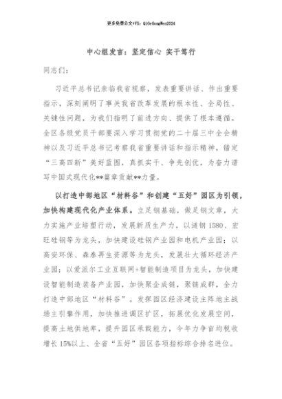 / 【七哥公文】2024年:中心组发言:坚定信心 实干笃行+更多免费公文+VX:QiGeGongWen2024