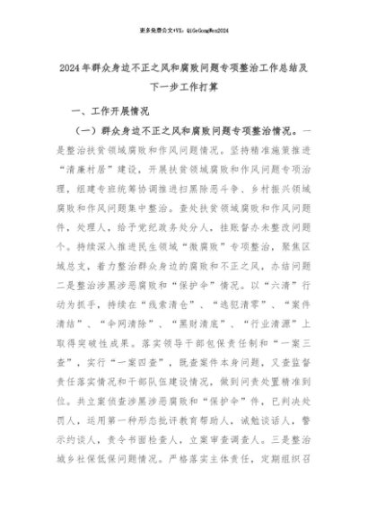 【七哥公文】2024年:2024年群众身边不正之风和腐败问题专项整治工作总结及下一步工作打算+更多免费公文+VX:QiGeGongWen2024