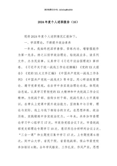 / 【七哥公文】2024年:2024年度个人述职报告(16)+更多免费公文+VX:QiGeGongWen2024