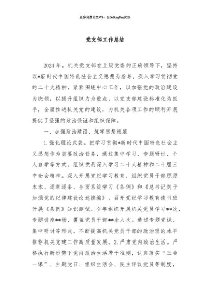 / 【七哥公文】2024年:党支部工作总结+更多免费公文+VX:QiGeGongWen2024