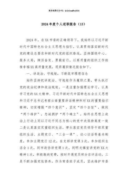 / 【七哥公文】2024年:2024年度个人述职报告(13)+更多免费公文+VX:QiGeGongWen2024
