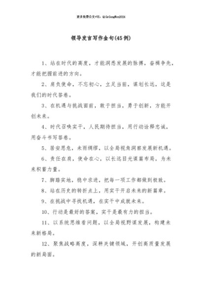 / 【七哥公文】2024年:(45例)领导发言写作金句+更多免费公文+VX:QiGeGongWen2024