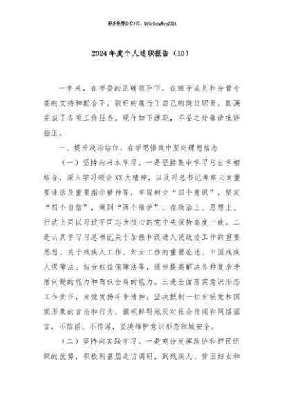/ 【七哥公文】2024年:2024年度个人述职报告(10)+更多免费公文+VX:QiGeGongWen2024