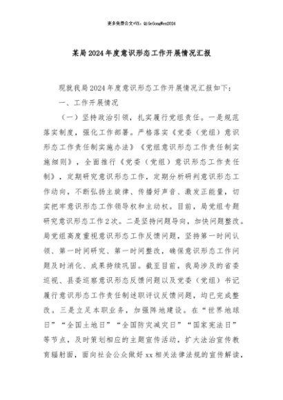 / 【七哥公文】2024年:某局2024年度意识形态工作开展情况汇报+更多免费公文+VX:QiGeGongWen2024