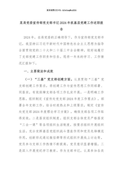 【七哥公文】2024年:某局党委宣传部党支部书记2024年抓基层党建工作述职报告+更多免费公文+VX:QiGeGongWen2024