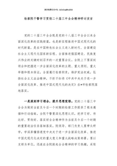 / 【七哥公文】2024年:检察院干警学习贯彻二十届三中全会精神研讨发言+更多免费公文+VX:QiGeGongWen2024