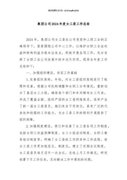 / 【七哥公文】2024年:集团公司2024年度女工委工作总结+更多免费公文+VX:QiGeGongWen2024