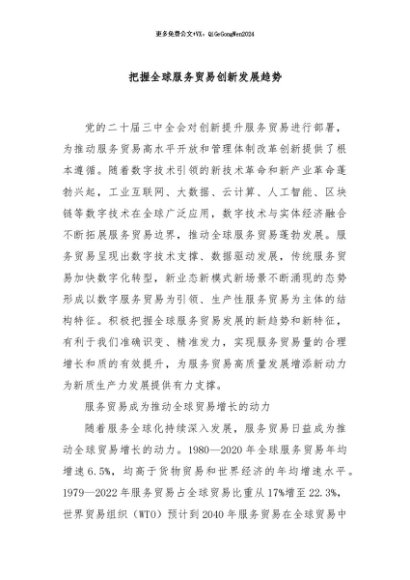 / 【七哥公文】2024年:把握全球服务贸易创新发展趋势+更多免费公文+VX:QiGeGongWen2024