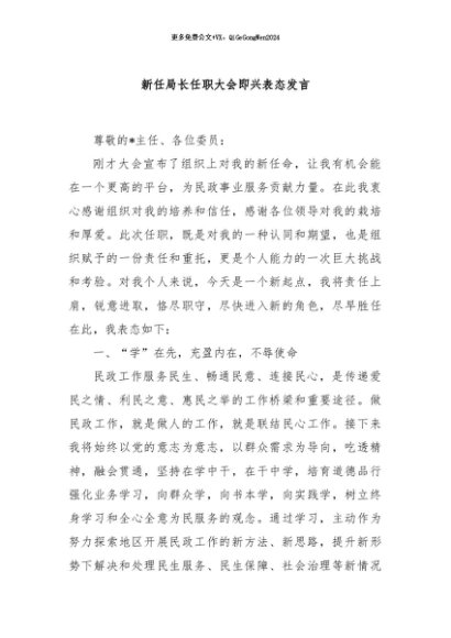 / 【七哥公文】2024年:新任局长任职大会即兴表态发言+更多免费公文+VX:QiGeGongWen2024