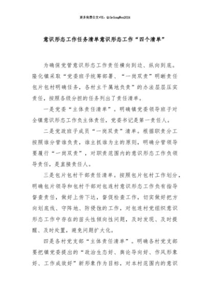 【七哥公文】2024年:意识形态工作任务清单 意识形态工作“四个清单”+更多免费公文+VX:QiGeGongWen2024