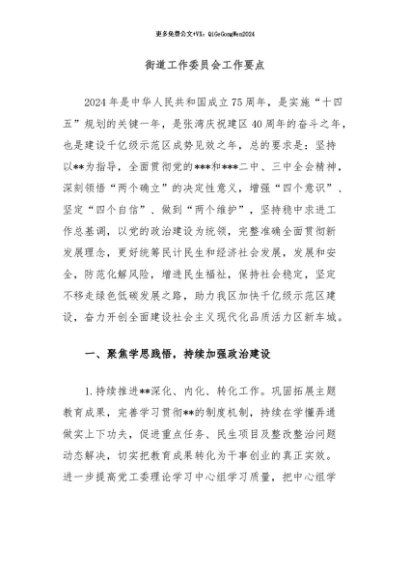 / 【七哥公文】2024年:街道工作委员会工作要点+更多免费公文+VX:QiGeGongWen2024