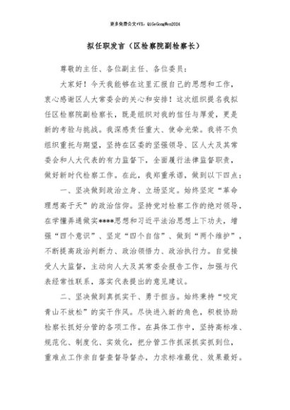 / 【七哥公文】2024年:拟任职发言(区检察院副检察长)+更多免费公文+VX:QiGeGongWen2024