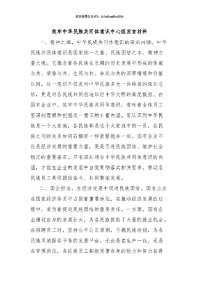 / 【七哥公文】2024年:筑牢中华民族共同体意识中心组发言材料+更多免费公文+VX:QiGeGongWen2024
