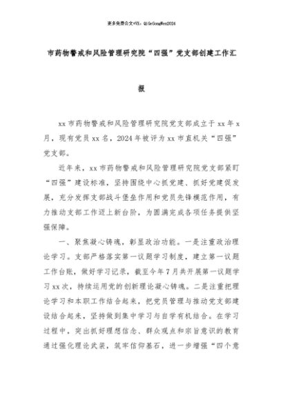 【七哥公文】2024年:市药物警戒和风险管理研究院“四强”党支部创建工作汇报+更多免费公文+VX:QiGeGongWen2024