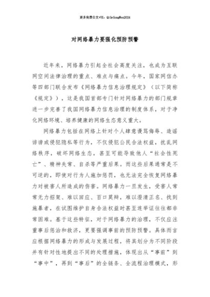 / 【七哥公文】2024年:对网络暴力要强化预防预警+更多免费公文+VX:QiGeGongWen2024