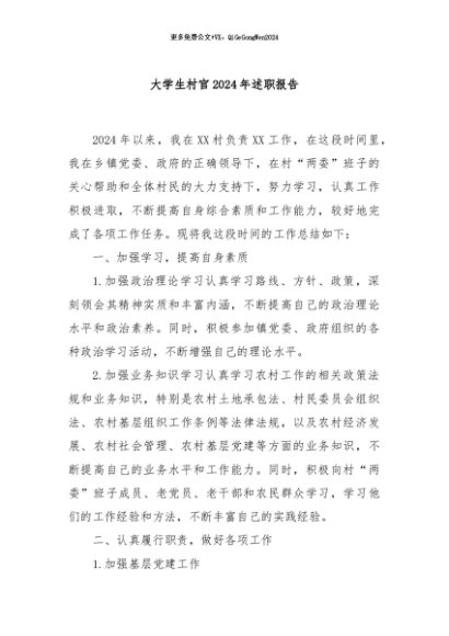/ 【七哥公文】2024年:大学生村官2024年述职报告+更多免费公文+VX:QiGeGongWen2024