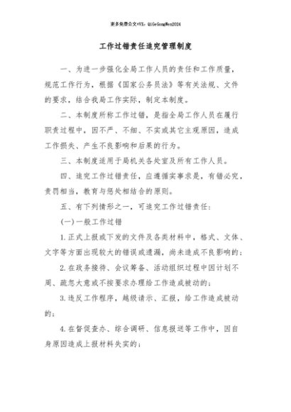 / 【七哥公文】2024年:工作过错责任追究管理制度+更多免费公文+VX:QiGeGongWen2024