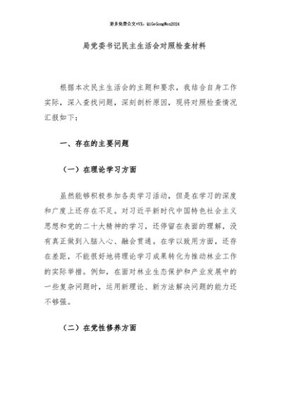 / 【七哥公文】2024年:局党委书记民主生活会对照检查材料+更多免费公文+VX:QiGeGongWen2024