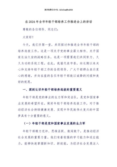 / 【七哥公文】2024年:在2024年全市年轻干部培养工作推进会上的讲话+更多免费公文+VX:QiGeGongWen2024