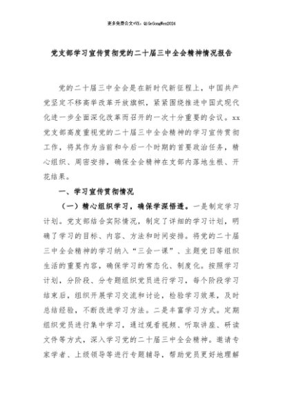 / 【七哥公文】2024年:党支部学习宣传贯彻党的二十届三中全会精神情况报告+更多免费公文+VX:QiGeGongWen2024