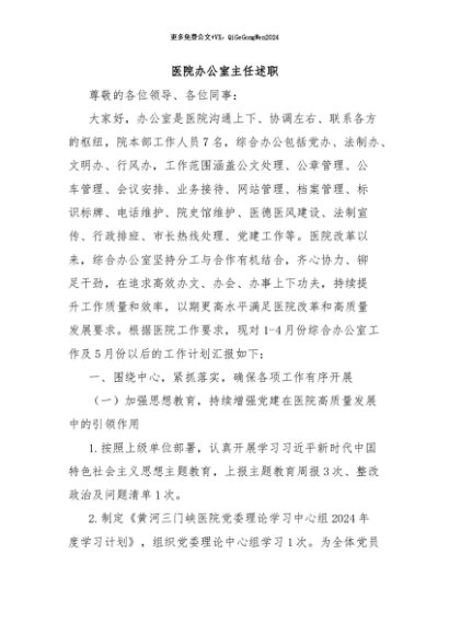 / 【七哥公文】2024年:医院办公室主任述职+更多免费公文+VX:QiGeGongWen2024
