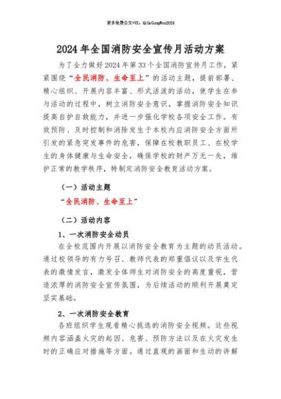 / 【七哥公文】2024年:2024年全国消防安全宣传月活动方案+更多免费公文+VX:QiGeGongWen2024