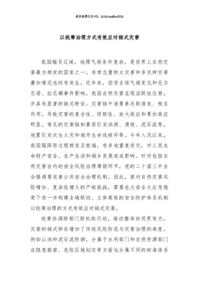 / 【七哥公文】2024年:以统筹治理方式有效应对链式灾害+更多免费公文+VX:QiGeGongWen2024