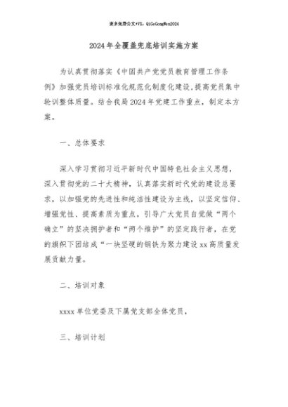 / 【七哥公文】2024年:2024年全覆盖兜底培训实施方案+更多免费公文+VX:QiGeGongWen2024