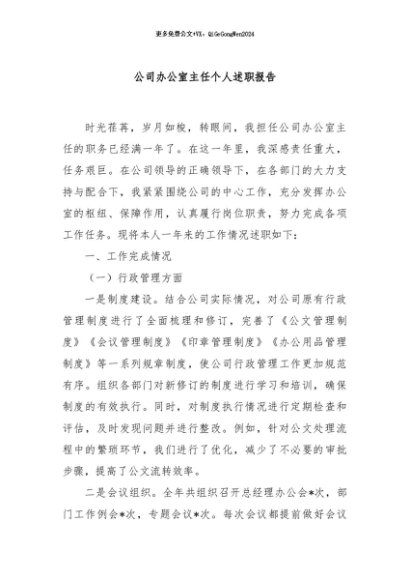 / 【七哥公文】2024年:公司办公室主任个人述职报告+更多免费公文+VX:QiGeGongWen2024