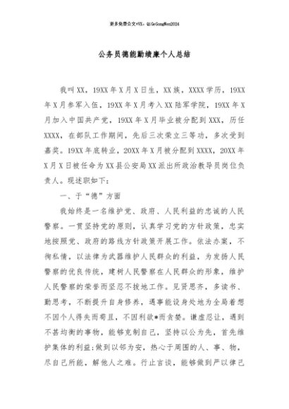 【七哥公文】2024年:公务员德能勤绩廉个人总结+更多免费公文+VX:QiGeGongWen2024