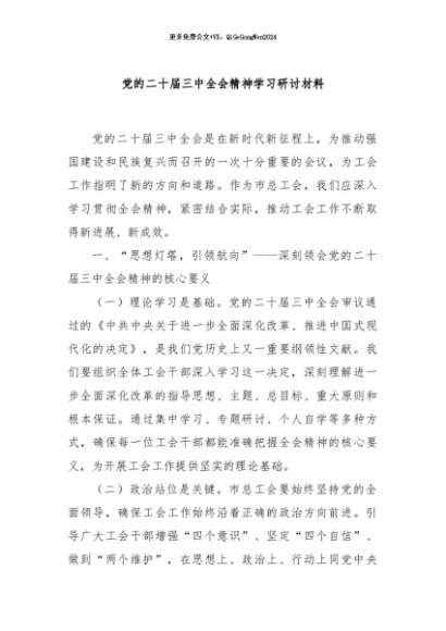 / 【七哥公文】2024年:党的二十届三中全会精神学习研讨材料+更多免费公文+VX:QiGeGongWen2024