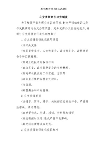 【七哥公文】2024年:公文差错责任追究制度+更多免费公文+VX:QiGeGongWen2024