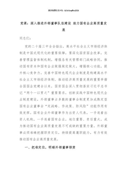 【七哥公文】2024年:党课:深入推进外部董事队伍建设 助力国有企业高质量发展+更多免费公文+VX:QiGeGongWen2024