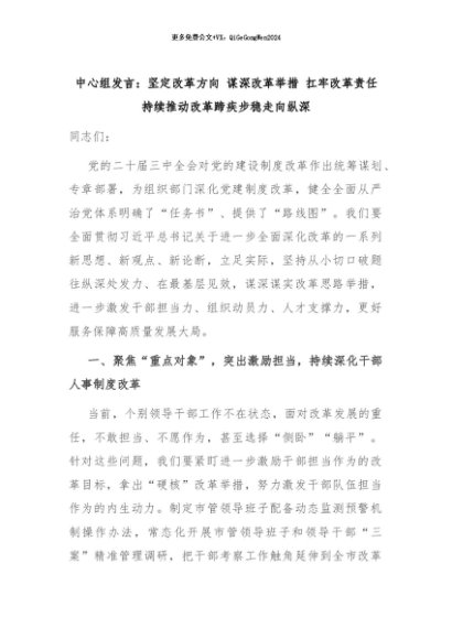 【七哥公文】2024年:中心组发言:坚定改革方向 谋深改革举措 扛牢改革责任持续推动改革蹄疾步稳走向纵深+更多免费公文+VX:QiGeGongWen2024