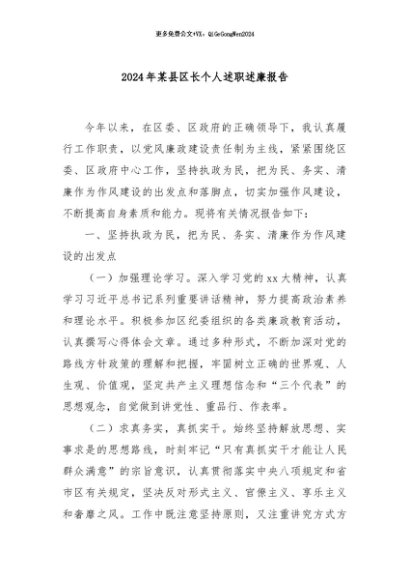 / 【七哥公文】2024年:2024年某县区长个人述职述廉报告+更多免费公文+VX:QiGeGongWen2024