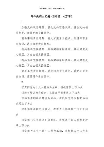 / 【七哥公文】2024年:(555组)写作提纲大汇编+更多免费公文+VX:QiGeGongWen2024