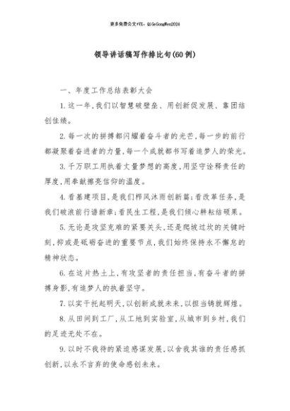 / 【七哥公文】2024年:(60例)领导讲话稿写作排比句+更多免费公文+VX:QiGeGongWen2024
